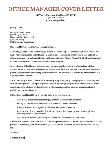 Sample Office Manager Cover Letter - Discover 25 compelling office manager cover letter examples and templates to help you craft the perfect application and stand out in your job search. Create the perfect cover letter with our free office manager cover letter example and expert writing tips. Office manager cover letter example. More office manager cover letter examples. Learn how to write a great office manager.